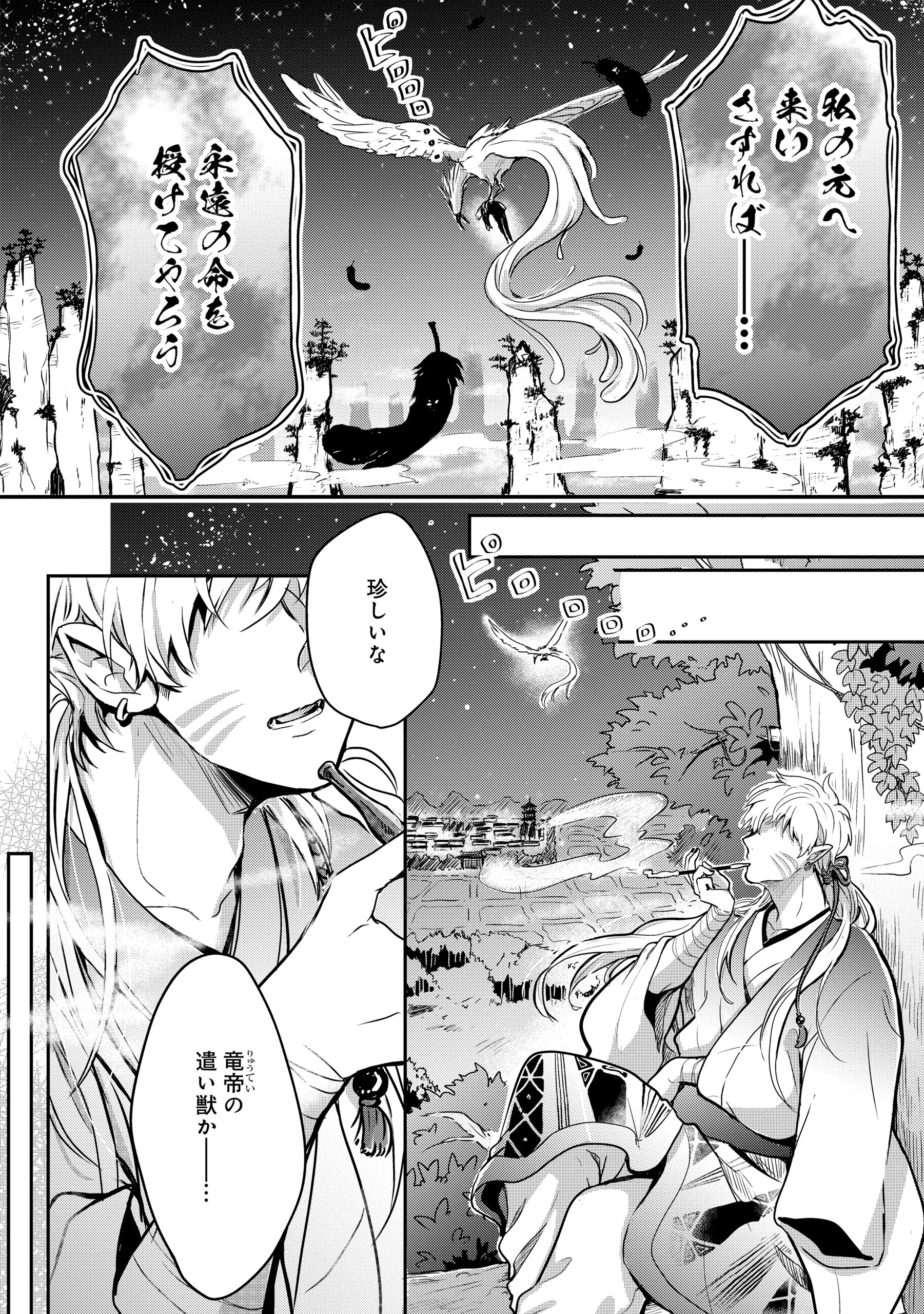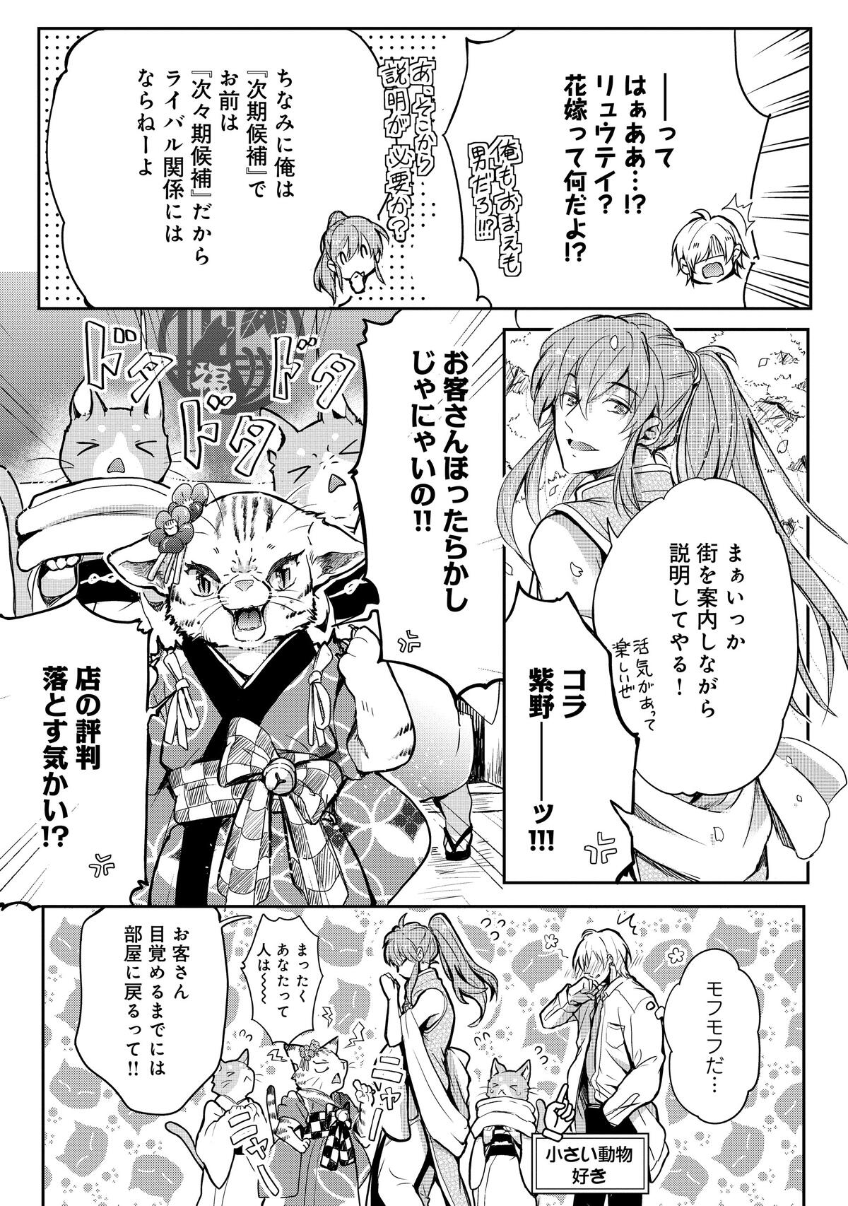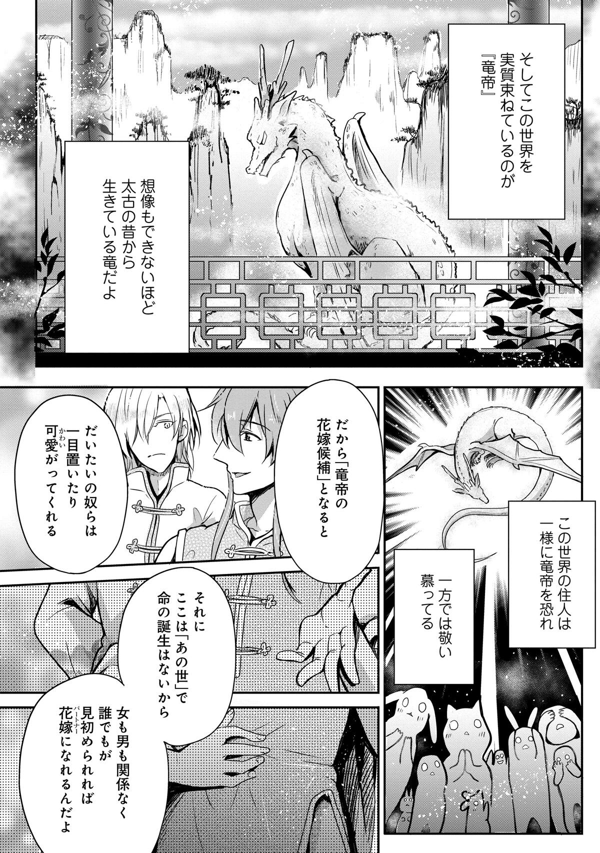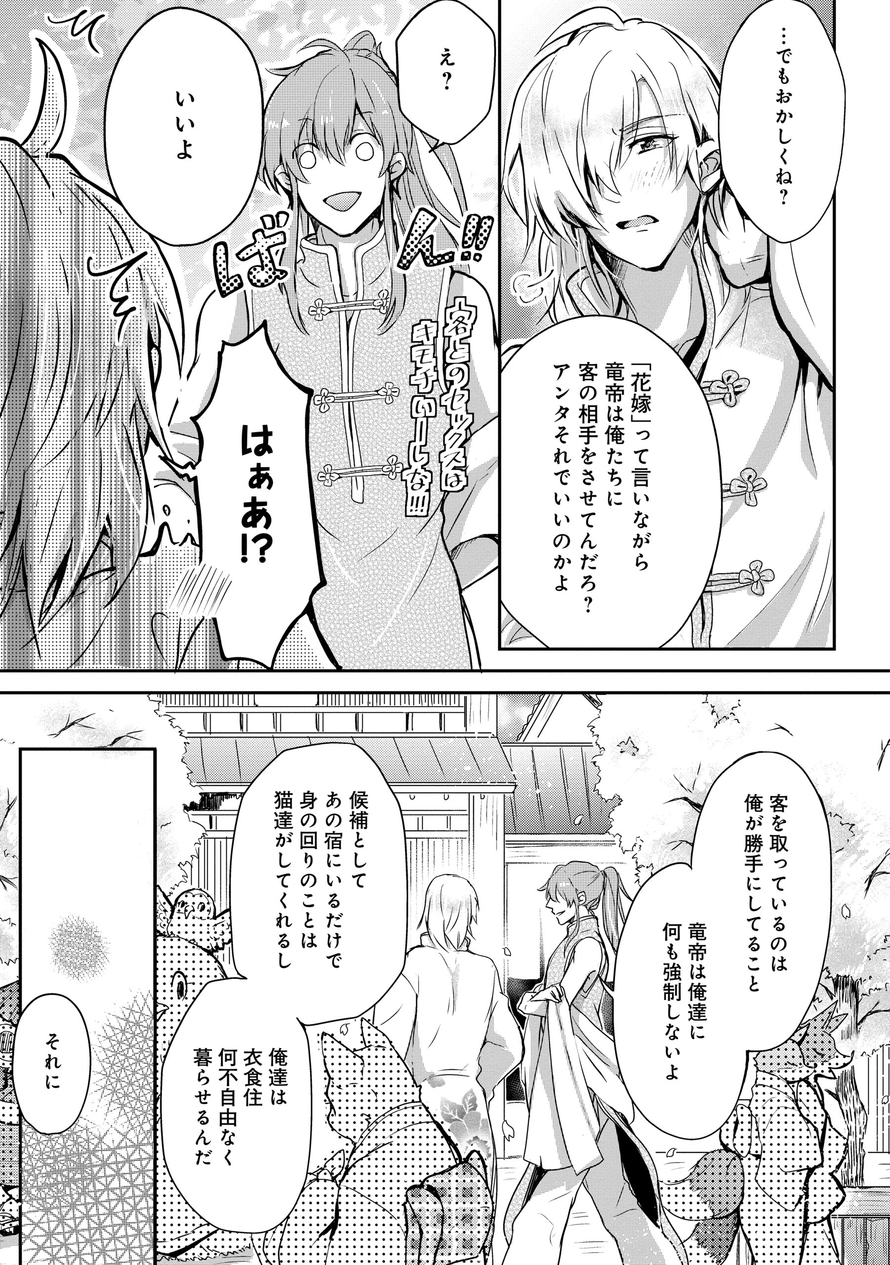 あの声の主は「竜帝」で、その花嫁候補として見初められたという羽衣石は、同じく花嫁候補の人間・紫野に案内されるままに遊郭でお世話になることに。