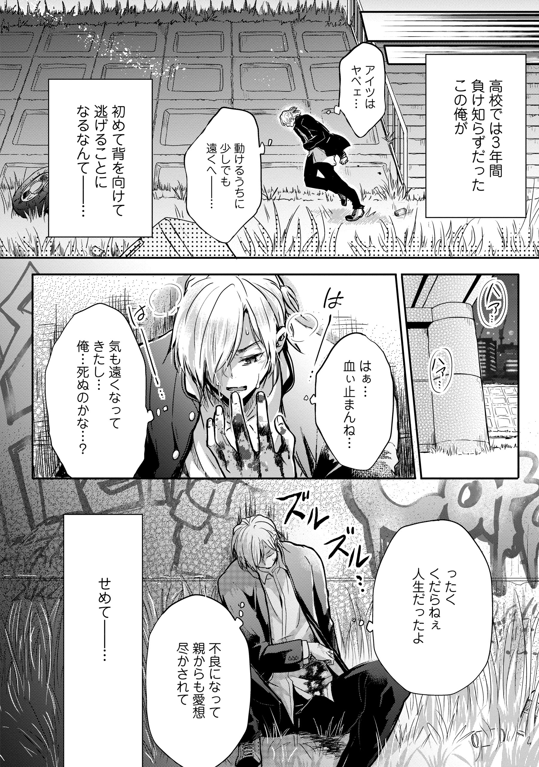 喧嘩では負けなしのヤンキーだった羽衣石は、喧嘩の最中に刺され、絶対絶命のピンチに陥ってしまう。